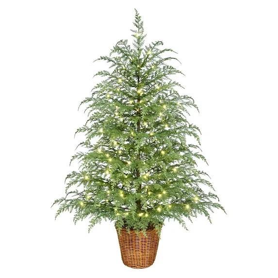 4′ Pre-Lit Green Cypress Artificial Christmas Potted Tree with 100 Warm White Twinkle LED Lights, by My Texas House
