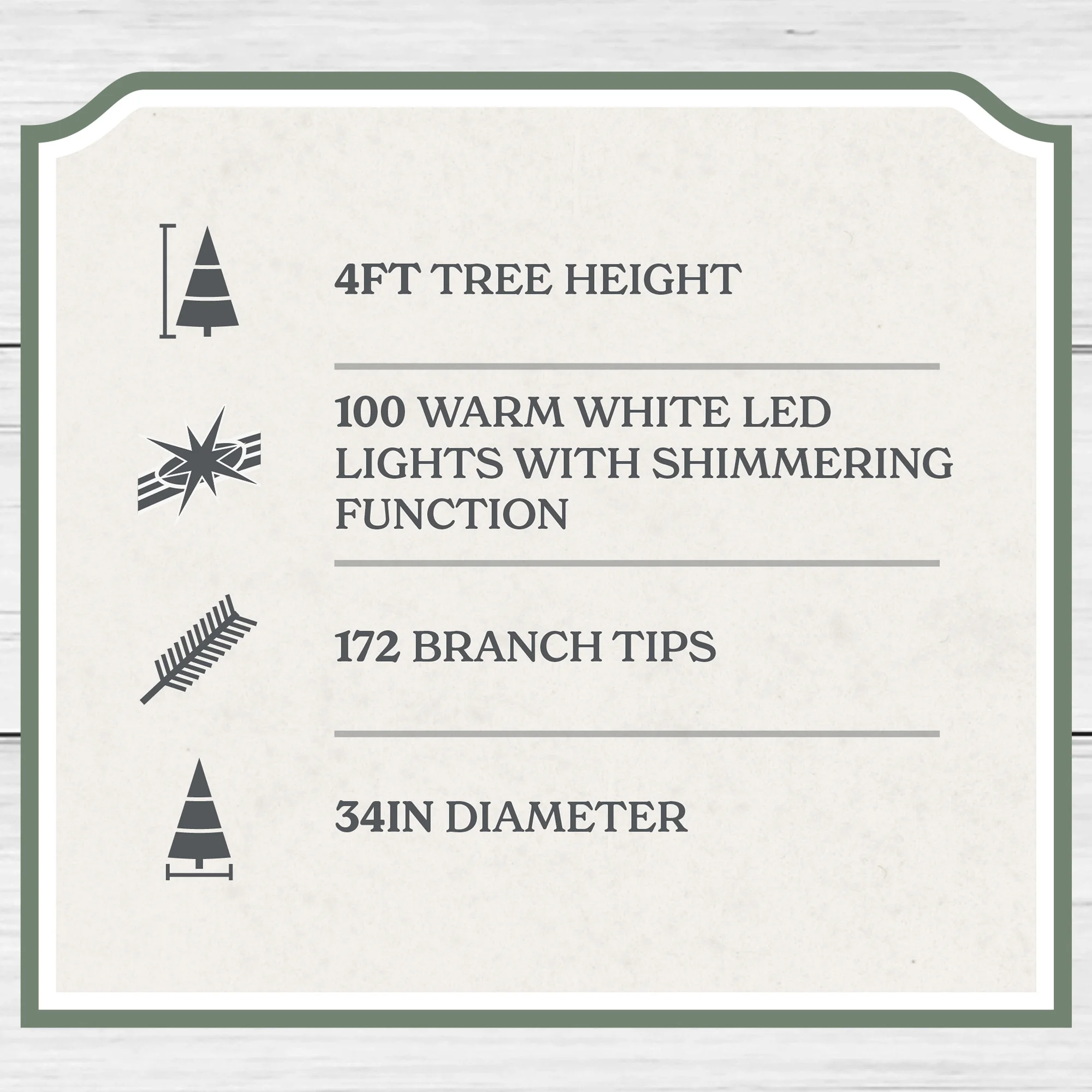 Create a bright, joyful holiday setting in any small space with the My Texas House 4-Foot Pre-Lit Potted Green Cypress Artificial Christmas Tree. Bring elegance and warmth to your holiday home with this natural-looking, real-feel artificial cypress Christmas tree. Thoughtfully designed with lifelike pre-attached branch tips crafted with memory wire, it allows for effortless shaping and minimal fluffing, while hinged construction ensures simple and graceful assembly. Its lush greenery offers the perfect canvas for your most cherished ornaments and family heirlooms, yet is equally stunning when left unadorned, showcasing its vibrant branches illuminated by 100 warm white LED lights. With twinkle-and-shimmering functions that create a soft, enchanting glow, the lights are beautifully pre-strung to prevent tangling, making setup seamless. This exquisite cypress Christmas tree captures the spirit of the season, filling your home with timeless charm and radiant holiday cheer. Standing 4 feet tall and 34 inches in diameter with an artificial woven basket base, this lively little Christmas tree is small enough to fit anywhere, but large enough to make a festive holiday statement. The vibrant beauty of this My Texas House 4-Foot Pre-Lit Potted Green Cypress Artificial Christmas Tree will inspire happiness in your home or office for many holiday seasons to come.