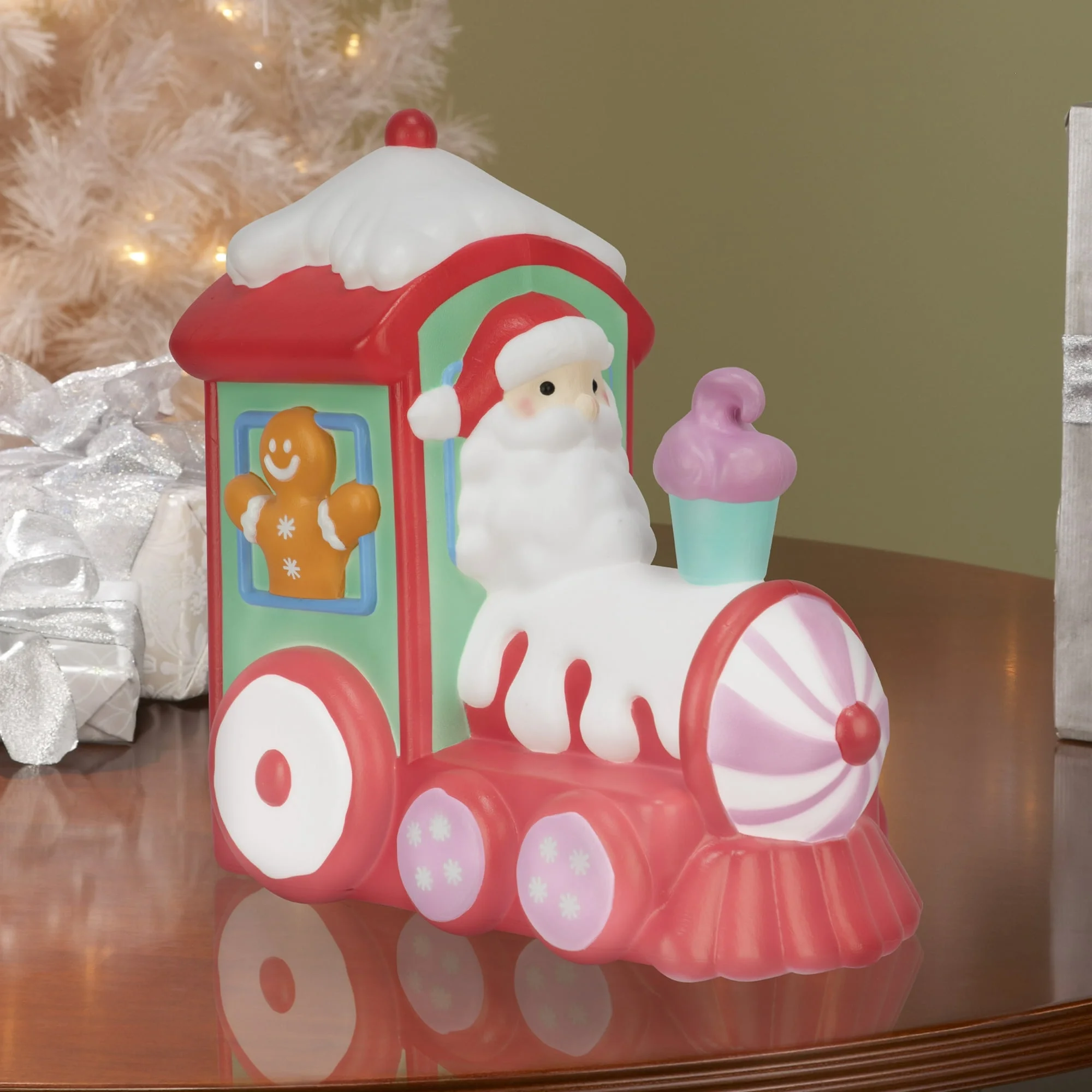 • ‌Features Santa in a festive train with a gingerbread man and cupcake accent